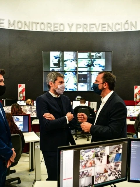 Ya en la localidad de Garín, recorrieron el microestadio municipal, inaugurado en 2019 como un espacio deportivo y cultural, que desde 2020 fue puesto a disposición para atender las demandas generadas por la pandemia. En un primer momento, se lo utilizó como centro de atención para albergar a 50 pacientes de bajo nivel de complejidad ante la cercanía con la UDP, mientras que desde marzo de este año funciona como vacunatorio contra el Covid-19, con 76 trabajadores y trabajadoras, y más de 15.000 vecinos y vecinas que ya recibieron su correspondiente vacuna. Por último, también recorrieron el Centro de Monitoreo de Garín, donde el ministro se interiorizó sobre las distintas herramientas que implementa el Municipio para velar por la seguridad de toda la comunidad.