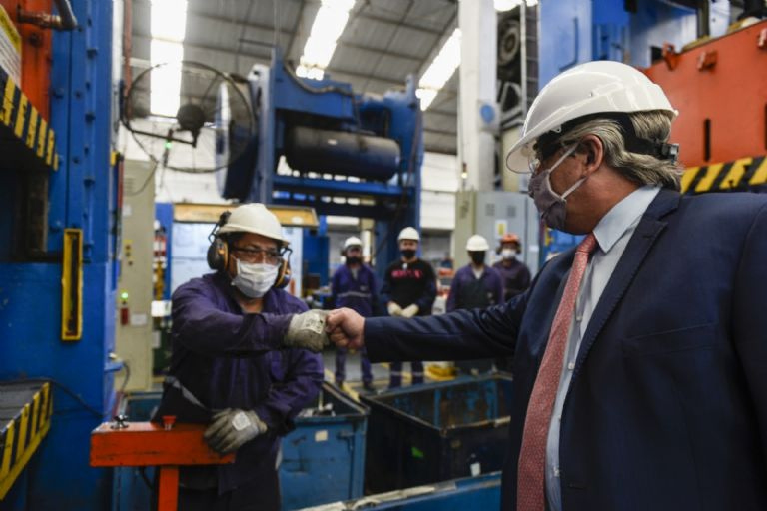“Me pone muy contento que estén de pie, con fuerza y generando empleo para los argentinos”, añadió el jefe de Estado.