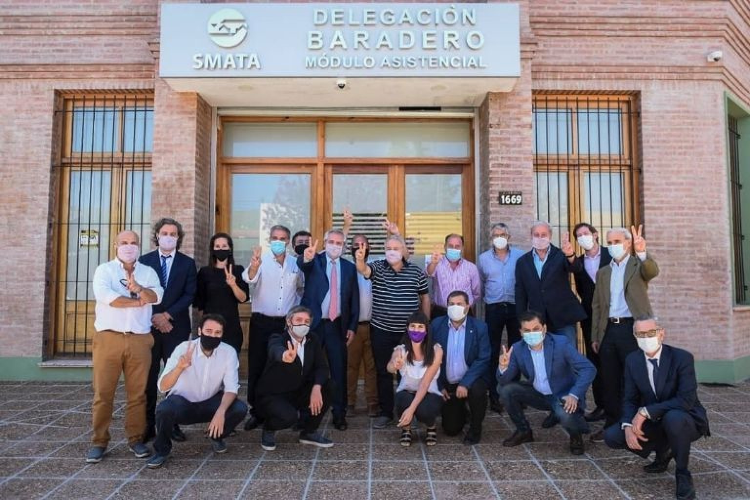 Durante la visita a Baradero, los intendentes pudieron dialogar con el primer mandatario y con el jefe del bloque del FdT en el marco de un almuerzo celebrado en la sede local del gremio del sector automotriz Smata. El intendente anfitrión, Esteban “Tito” Sanzio, integra de hecho el consejo directivo nacional de Smata.