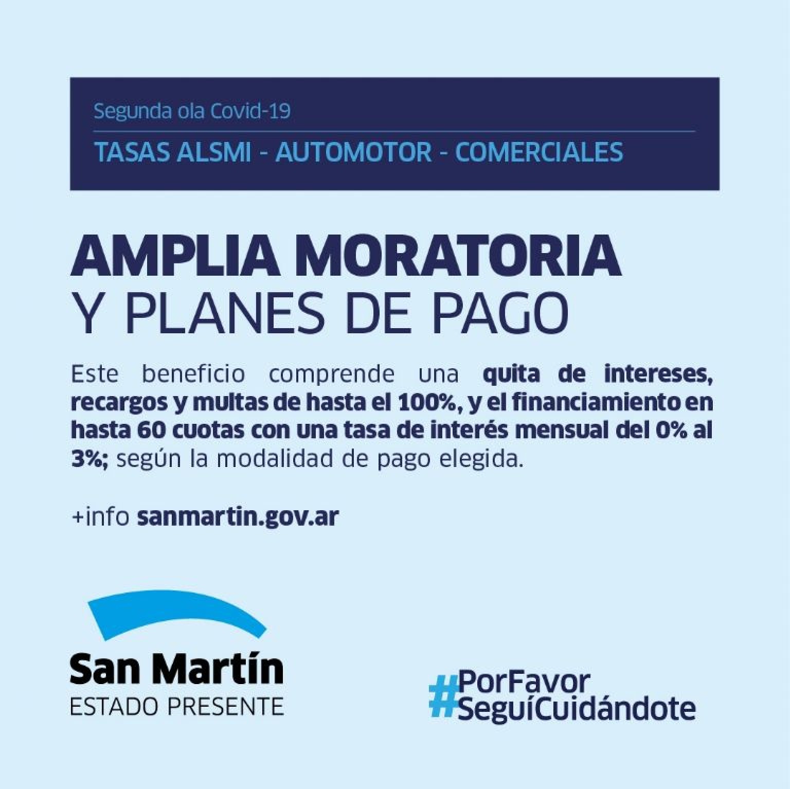 En el marco de la emergencia sanitaria, el Municipio de San Martín lanza una amplia moratoria y planes de pago para acompañar a las PyMEs, familias, pequeños y medianos contribuyentes a que puedan cumplir con sus impuestos.