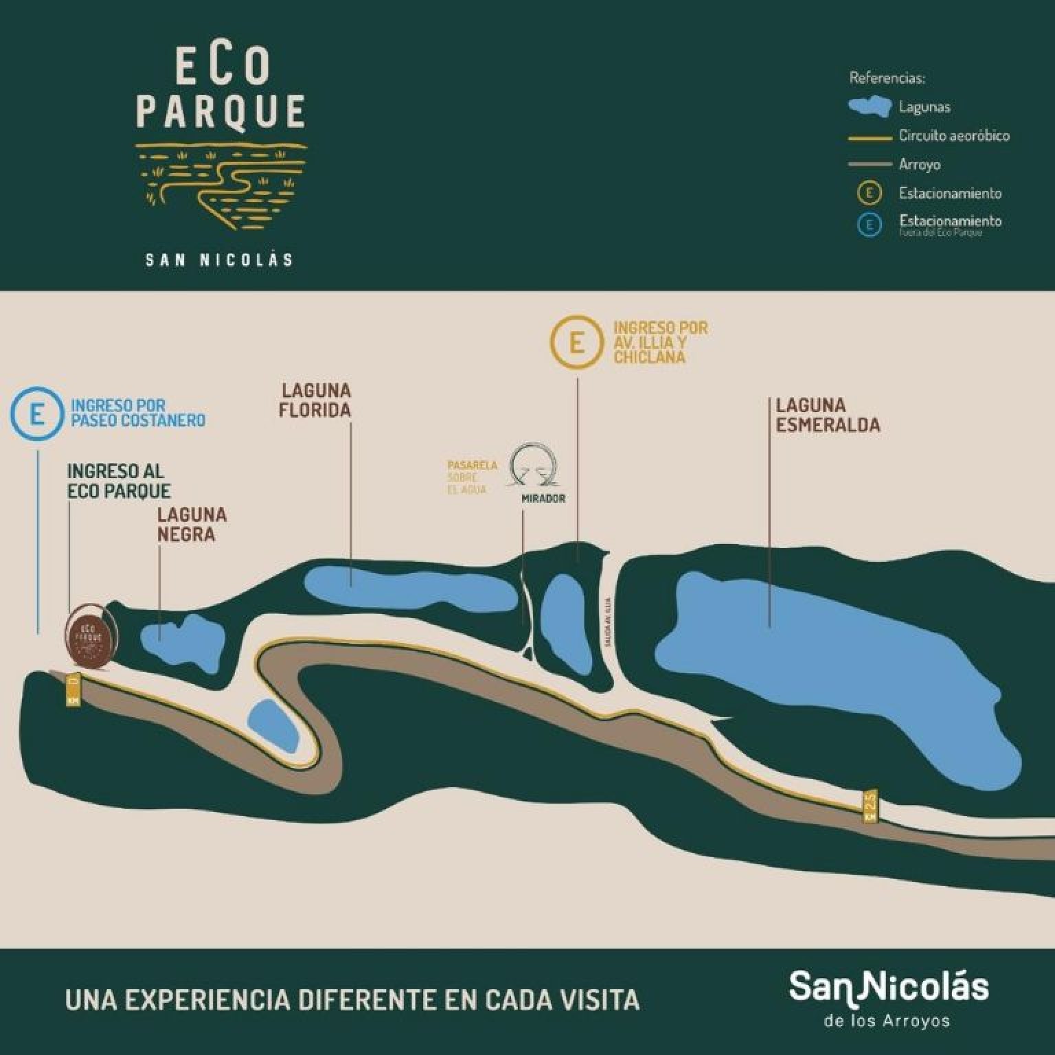 En el recorrido por el Eco Parque se encontrarán con cartelería para conocer las especies de flora y fauna y los distintos sectores del parque como las lagunas, barranca y arroyo; junto con historias y leyendas de algunas de las especies nativas que hacen único a este lugar.